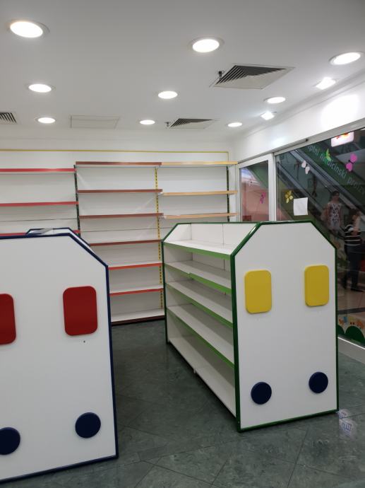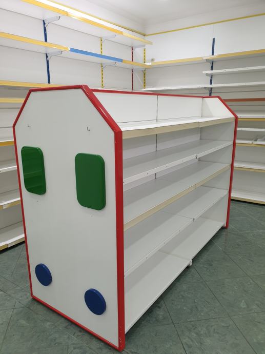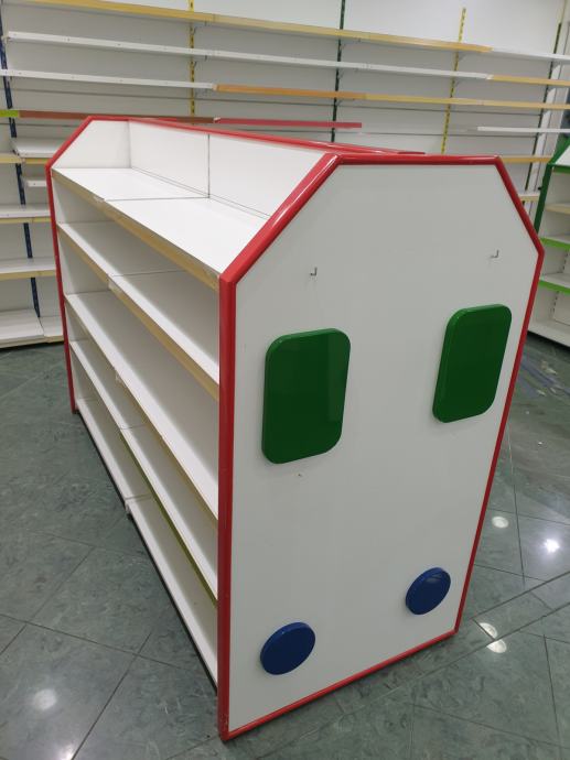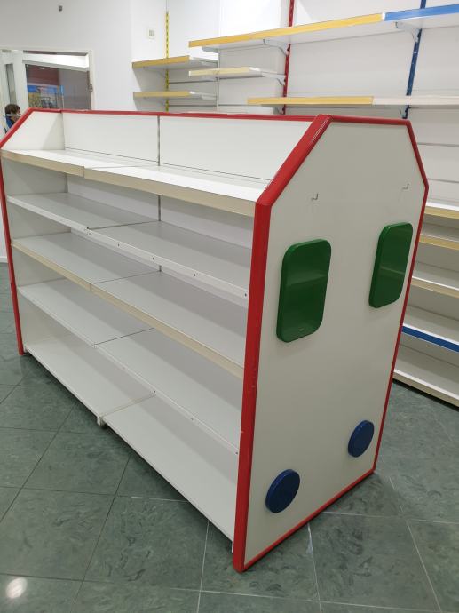 Prodajem 1 kom, ušćuvane, obostrane police pogodne za dućane, butike tekstilne robe, cipela, darovnog programa itd.,a naročito je prikladna po svom dizajnu za dječje dućane svih vrsta !