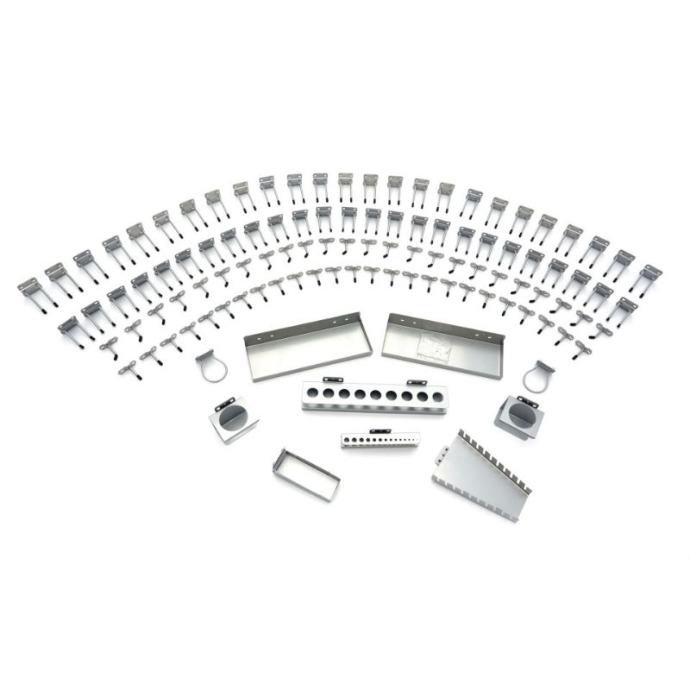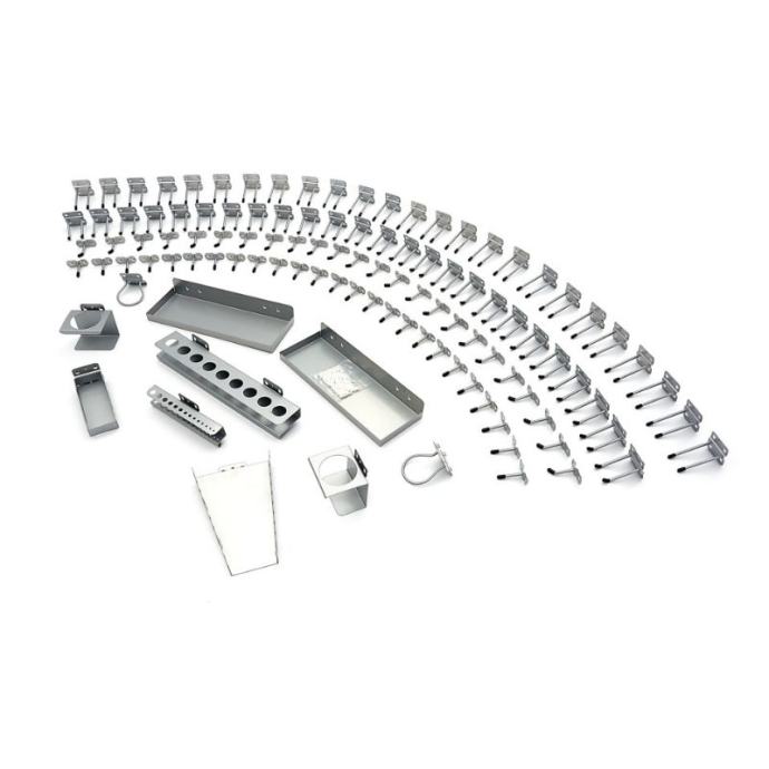 Tehnički podaci25 x kuka (50 mm, Ø 6 mm)25 x kuka 45° (50 mm, Ø 6 mm)25 x dvostruka kuka (100 mm, Ø 6 mm)25 x dvostruka kuka 45° (75 mm, Ø 6 mm)2 x okrugli držač (100 x 70 mm)2 x držač stroja (Ø 60 mm)1 x držač svrdla (za 14 svrdla)1 x držač bitova (za 9 bitova)2 x ravna ladica (350 x 125 mm)1 x držač za ključeve1 x mala posuda (150 x 55 mm)]]>
