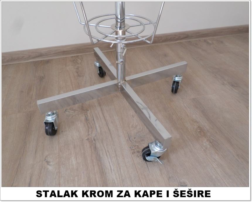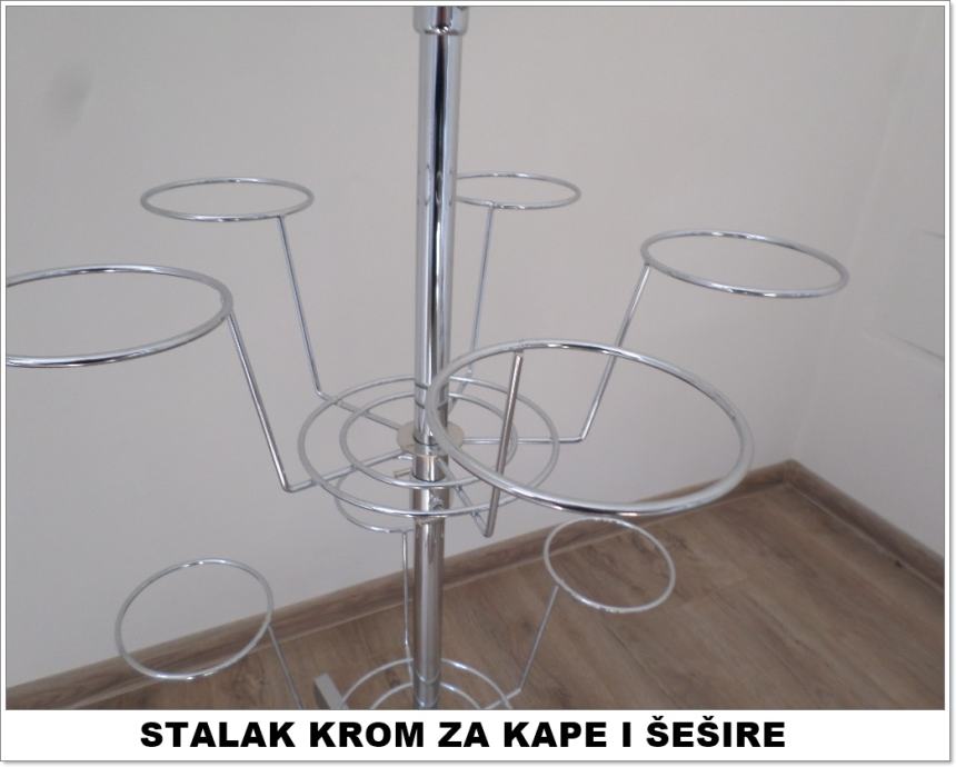 Prodajemo metalne kromirane stalke za kape i šešire. Novo. Stalci su na kotačima i jako su čvrsti i kvalitetno izrađeni