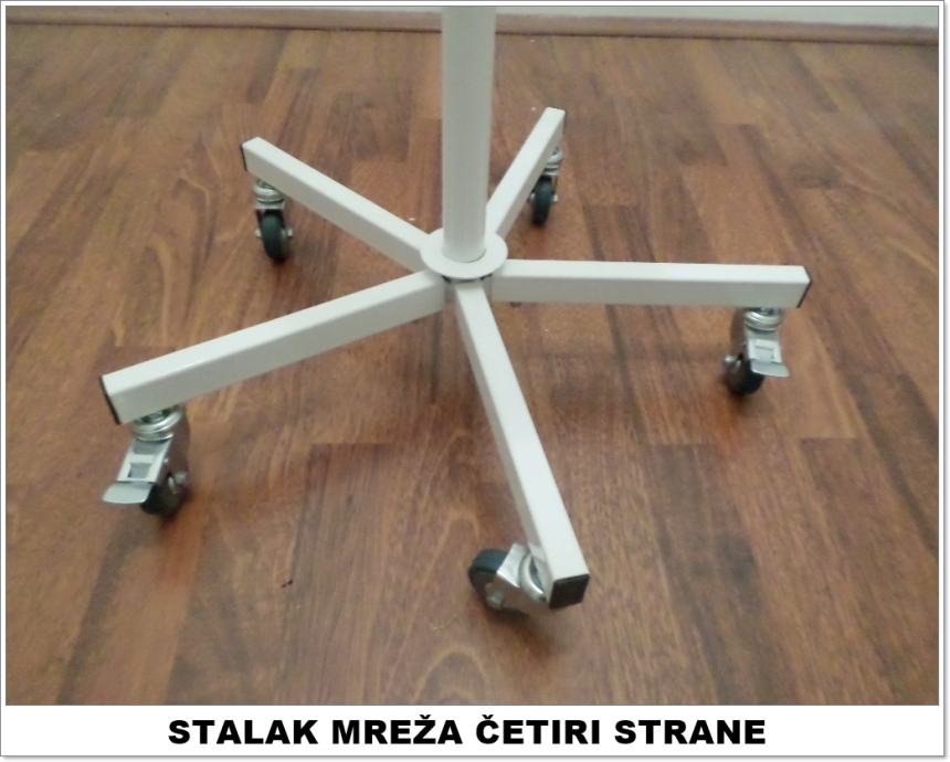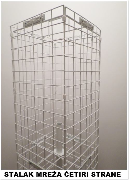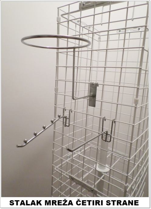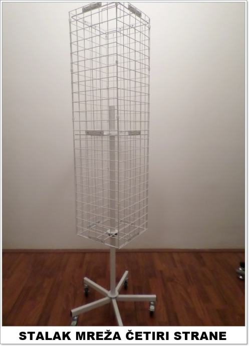 Prodajemo metalne stalke mreže s četiri strane za izlaganje razne robe. Stalci su okretni i visokokvalitetno su izrađeni. Visina 170 cm, a širina 30 cm. Novo, plastificirano. Imamo također i sve vrste kukice za stalke