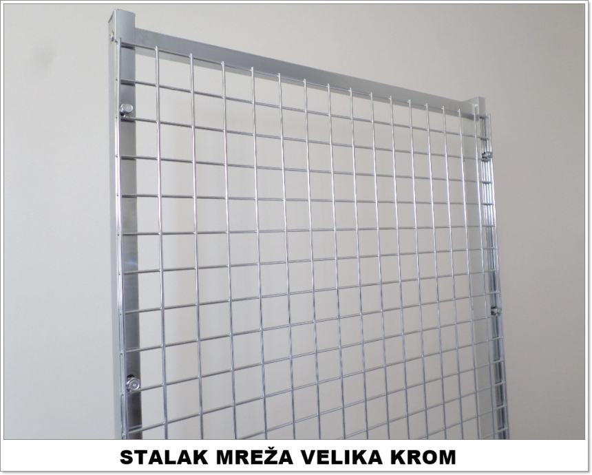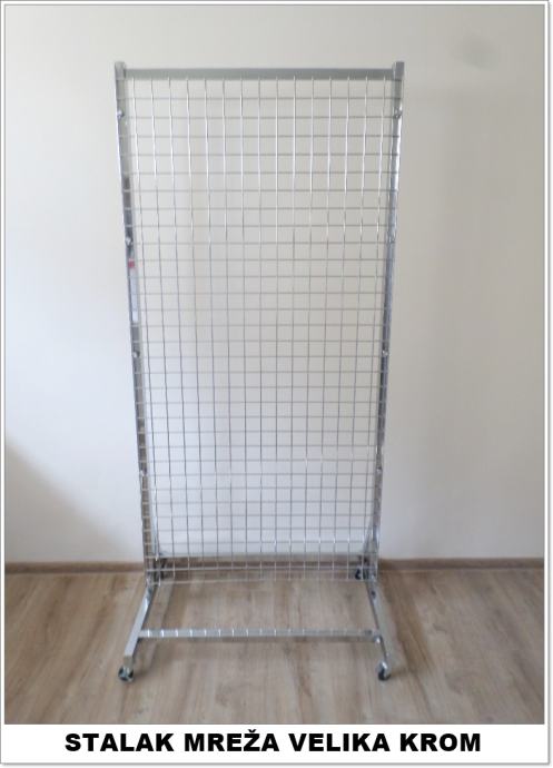 Prodajemo samostojeće stalke mreže za izlaganje robe na dvije strane. Stalci su čvrsti i stabilni i mogu se koristiti za različitu robu. Novo, kromirano. Dimenzija 2000x900 mm. Također imamo i sve vrste kukica za taj stalak