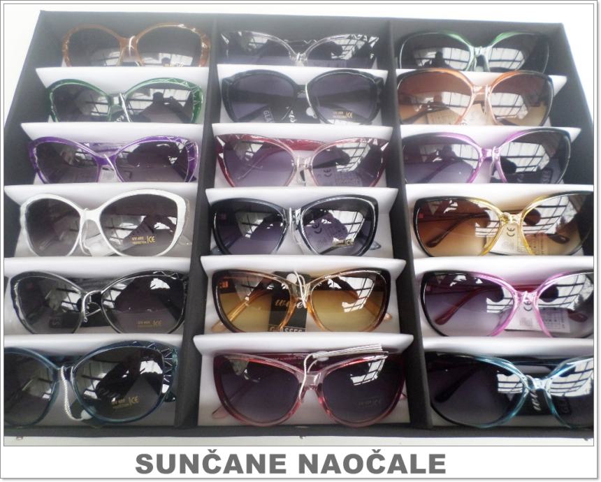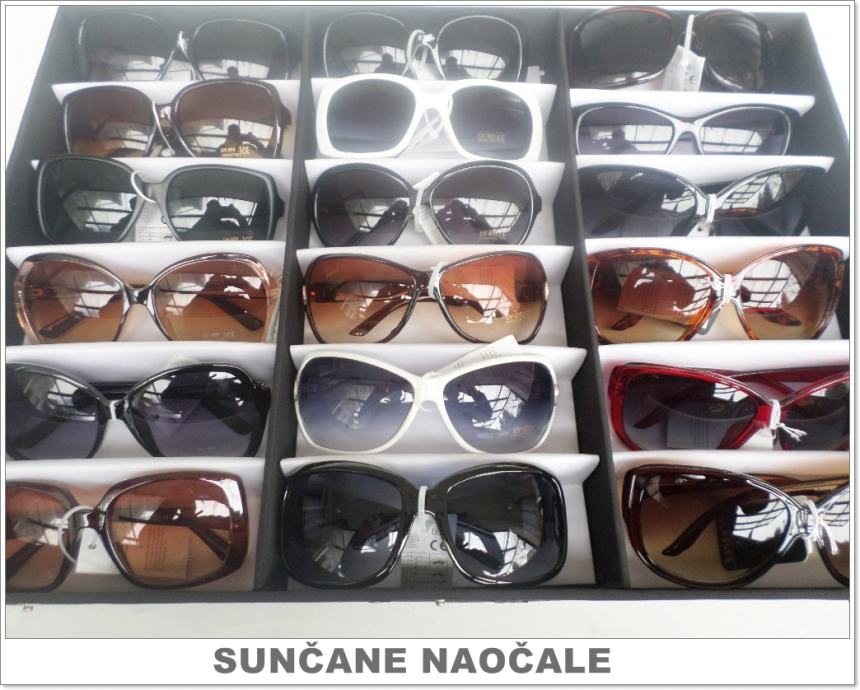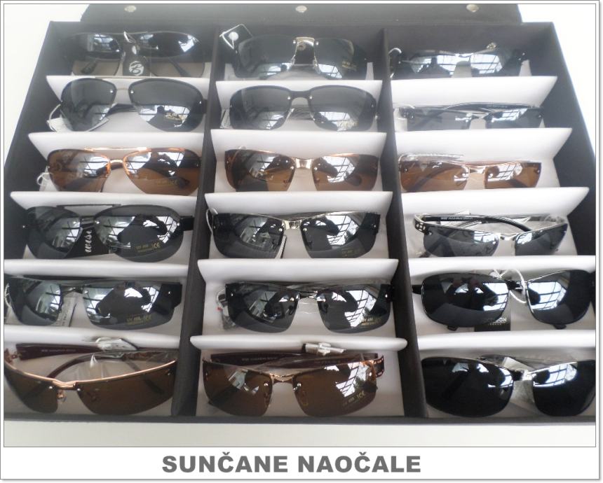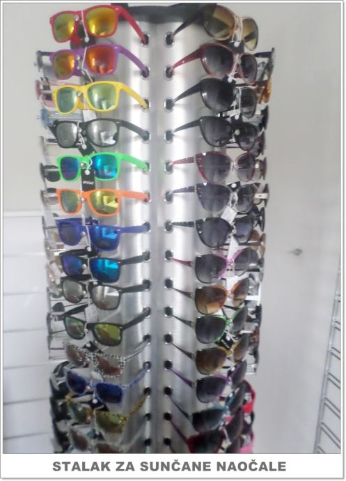 Prodajemo nove zidne stalke za 60 komada naočala. Osim zidnih stalaka imamo i okretne stalke za 114 i 44 komada naočala. Imamo također veliki izbor najnovijih modela sunčanih naočala po najpovoljnijim cijenama
