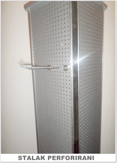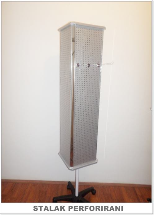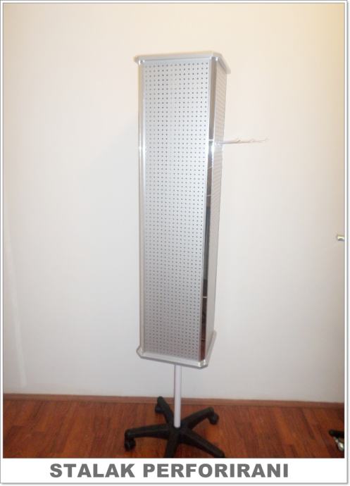 Prodajemo četverostrane stalke s rupicama za izlaganje razne sitne robe. Stalci su okretni, imaju 4 uska ogledala sa svake strane i visokokvalitetno su izrađeni. Visina 180 cm. Novo. Imamo također i sve vrste kukice za stalke