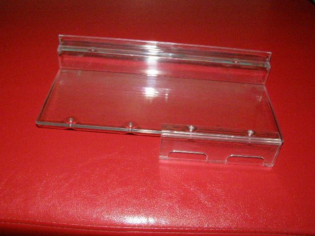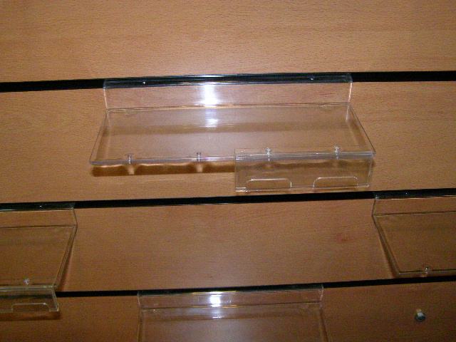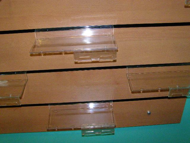 Zidne police ( ploče ), koje se učvršćuju na zid, sa utorima u koje se umeću plexy police ( d 25 cm x š 10 cm ) sa demontažnim nosačima za cijene. Ploče se mogu rezati ili spajati na željenu dimenziju. Plexy police se mogu složiti u raspored po potrebi. Uz svaku ploču dolazi potreban broj plexy polica ( raspored kao na slikama ). U utorima su original vodilice. Korišteno u trgovini obuće. Uščuvane i u urednom stanju. Police su industrijski izrađene za profesionalnu upotrebu - nije homemade izrada.