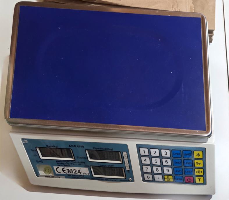 vaga je stara jednu godinu. Pogodna za manje dućane, restorane, tržnice... Radi na bateriju ili preko strujnog kabla.