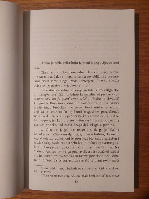 U svom prvom romanu prevedenom na hrvatski jezik, ovaj se talijanski romanopisac predstavlja kao vrsni poznavatelj kriminalističkog, "policijskog", crnog (noir) romana. Ipak, baveći se rodnom Sardinijom, autor više govori o "vječnim pitanjima" dobra i zla, političkim previranjima suvremene Italije, metafizičkim aporijama današnjice i kulturološkim posebnostima talijanskih regija, posebno rodnog mu otoka. U centru je pozornosti ovog romana advokat Bustian, tipičan Foisov tragač za istinom, koji, istražujući zločin, prikazuje ruralnu Sardiniju 19. stoljeća u jednom novom svjetlu, tipičnom za velike pripovjedače koji su provinciju uzdigli do mitske prepoznatljivosti. Fois je višestruko nagrađivan (kao i ovaj roman) i međunarodno cijenjen pisac unutar ali i izvan žanra kriminalističkog romana.