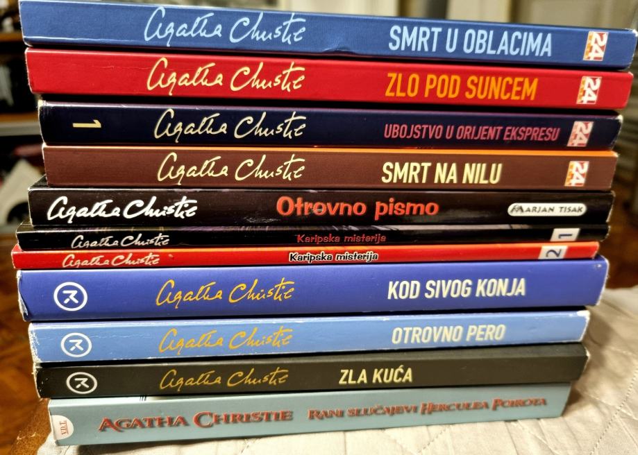 Ubojstvo u Orient ekspresu, Smrt na Nilu, Zlo pod suncem, Smrt u oblacima, Otrovno pero i Otrovno pismo - svaka po 3,50 eura, a Kod sivog konja, Rani slučajevi Hercula Poirota i Zla kuća- svaka po 5,00 eura. Više fotografija na upit.