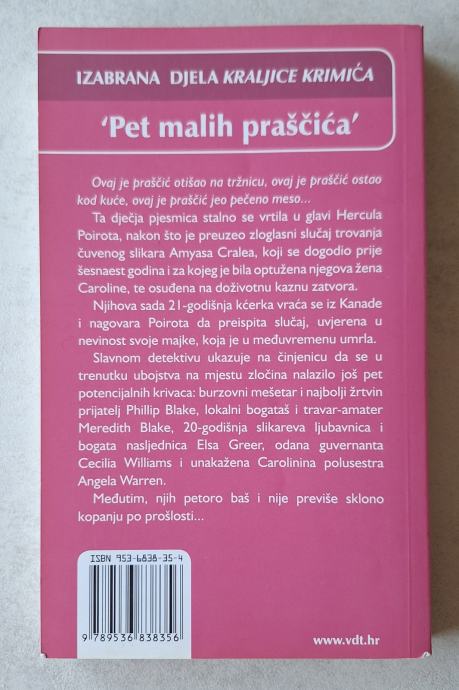 "Ovaj je þraščić otišao na tržnicu, ovaj je praščić ostao kod kuće, ovaj je praščić jeo þečeno meso." Ta dječja pjesmica stalno se vrtila u glavi Hercula Poirota, nakon što je preuzeo zloglasni slučaj trovanja čuvenog slikara Amyasa Cralea, koji se dogodio prije šesnaest godina i za kojeg je bila optužena njegova žena Caroline, te osuđena na doživotnu kaznu zatvora Njihova sada 21 -godišnja kćerka vraća se iz Kanade i nagovara Poirota da preispita slučaj, uvjerena u nevinost svoje majke, koja je u međuvremenu umrla. Slavnom detektivu ukazuje na činjenicu da se u trenutku ubojstva na mjestu zločina nalazilo još pet potencijalnih krivaca: burzovni mešetar i najbolji žrtvin prijatelj Phillip Blake, lokalni bogataš i travar-amater, Meredith Blake, 20-godišnja slikareva |jubavnica i bogata nasljednica Elsa Greer, odana guvernanta Cecilia Williams i nakažena Carolinina polusestra Angela Warren. Međutim, njih petoro baš i nije previše sklono kopanju po prošlosti..