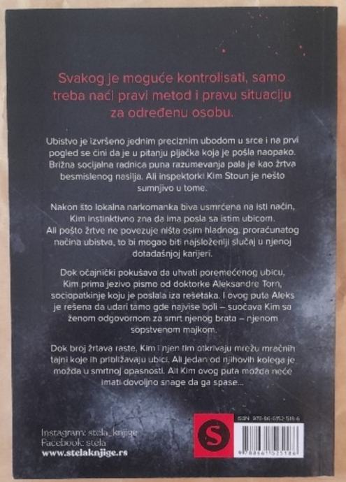 Prodajem knjigu "Krvne veze" autorice Angele Marsons, izdavač Stela. Riječ je o krimi trileru koji prati detektivku Kim Stone u istrazi ubojstva gdje svaka žrtva ima mračne obiteljske veze. Napeta priča o zločinima koji potresaju lokalno društvo, s karakterističnim stilom ove popularne autorice kriminalističkih romana. Knjiga je na stranom jeziku.