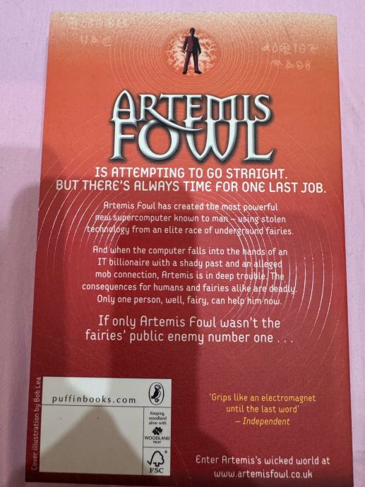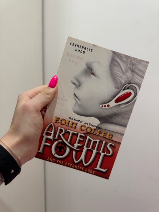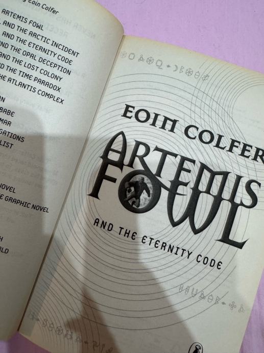 Artemis Fowl vječni kod - na engleskom. Knjiga je stajala u ormaru stoga se vidi trag godina.