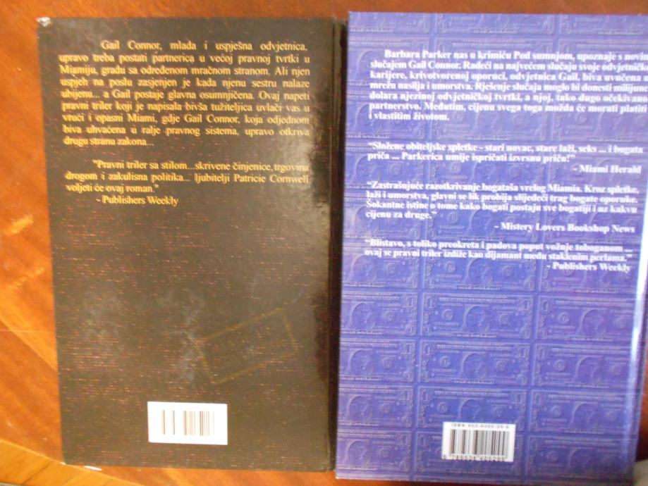 Prodajem knjige "Pod sumnjom" i "Sumnja u nevinost" Barbare Parker, u izdanju "Škorpiona", tvrdi uvez.