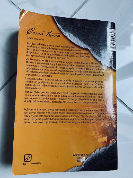 Inferno je Brownov dosad najsnažniji i najizazovniji roman, bezglavi triler utrke s vremenom koji će vas zgrabiti prvom stranicom i neće puštati sve dok ne zatvorite knjigu.