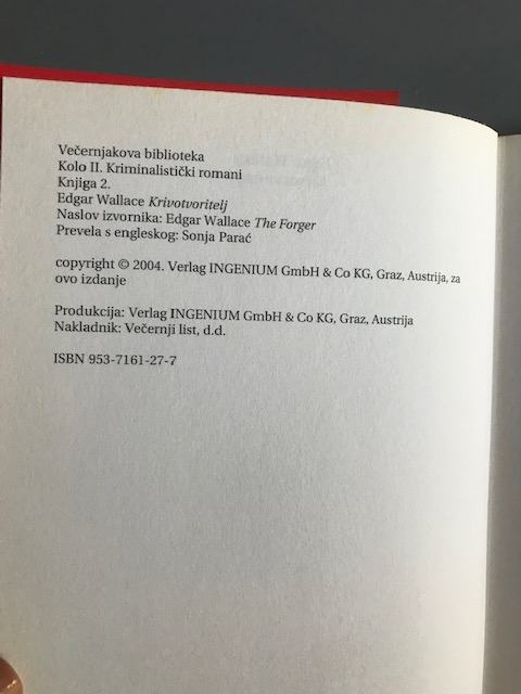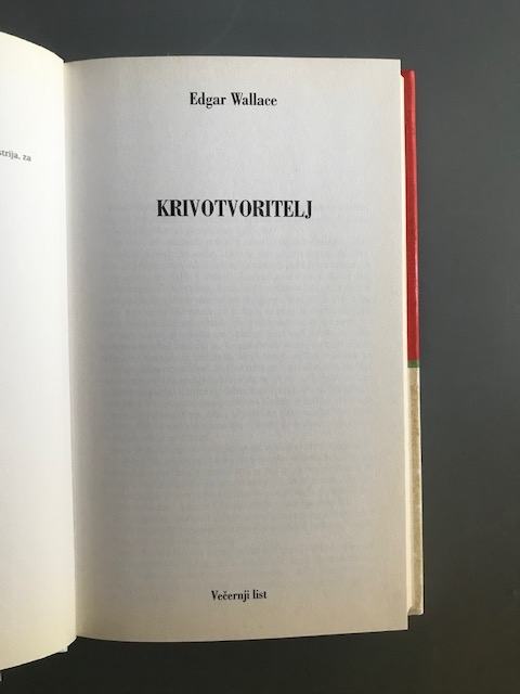 Krivotvoritelj engleskoga novinara, prozaika, dramatičara i pjesnika Edgara Wallacea (1875-1932) je jedan od najpopularnijih kriminalističkih romana autora kojega je kritika nazvala kraljem modernoga trilera. Wallace je bio iznimno plodan pisac: u njegovoj je ostavštini 175 knjiga, dvadesetak dramskih tekstova, četiri zbirke pjesama i teško izbrojivo mnoštvo članaka. Zlatno doba njegove vladavine engleskim i svjetskim knjižnim tržištem bile su dvadesete i tridesete godine 20. stoljeća. Podatak iz nakladničkih arhiva toga vremena govori da je čak četvrtina svih knjiga koje su se tada čitale u Engleskoj nastala iz pera Edgara Wallacea. No čitateljsko zanimanje za Wallacea ne smanjuje se ni danas, kad je konkurencija među autorima krimića oštrija nego ikad. Tome je uvelike pridonijela činjenica da su njegovi romani puni dinamičnih, uvjerljivih dijaloga i stoga ne samo čitki i pitki nego i vrlo pogodni za ekraniziranje, a njihova česta pojava u drugom mediju djeluje i povratno, budeći nov interes za tekstualni predložak. Premda vrlo produktivan, Wallace, naime, nije prvak u količini proizvedenih krimića (kvantitetom je od njega jači npr. Georges Simenon), ali je nedostižan rekorder po broju romana prenesenih na film ili televiziju. U njegovoj je filmografiji više naslova negoli u bibliografiji, jer su mu neki romani ili priče doživjeli i po nekoliko filmskih ili televizijskih adaptacija. Osobito često za njima su posezali njemački producenti i redatelji. Od 1959. godine do danas u Njemačkoj su snimljena 32 filma po Wallaceovim romanima, pričama i dramama, a glavne je uloge često tumačio Klaus Kinski.(iz tiska)