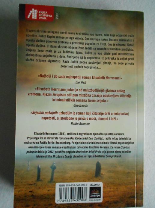 Prodajem novu knjigu "Svjedok pokojnih" Elisabeth Herrmann "Znanje" 2020. g., meki uvez.