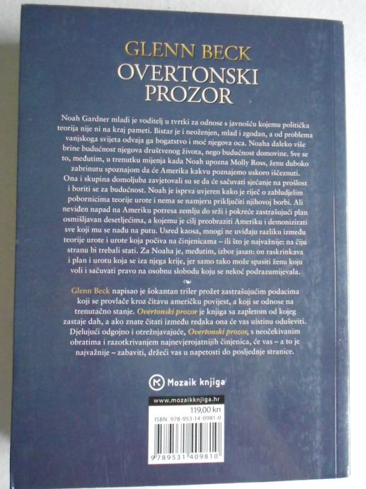 Prodajem novu knjigu "Overtonski prozor" Glenna Becka, "Mozaik knjiga", 2011. g., meki uvez.