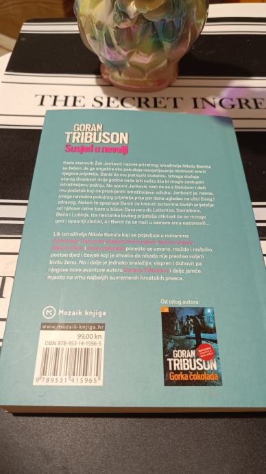 Lik istražitelja Nikole Banića koji se pojavljuje u romanima Zavirivanje, Siva zona, Dublja strana zaljeva, Noćna smjena, Bijesne lisice i Gorka čokolada ponešto se umorio, možda i razbolio, postao djed i čovjek koji je shvatio da nikada nije prestao voljeti bivšu ženu. No i dalje je jednako snalažljiv, oštrouman i duhovit pa njegove nove avanture autoru Goranu Tribusonu i dalje jamče mjesto na vrhu najboljih suvremenih hrvatskih pisaca