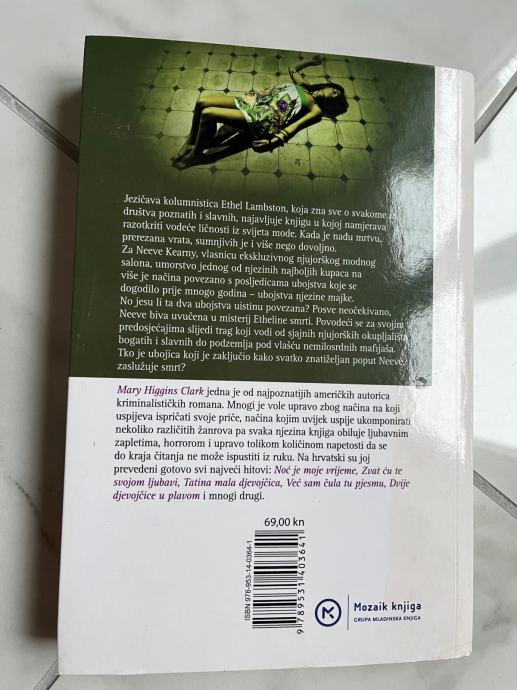 Jezičava kolumnistica Ethel Lambston, koja zna sve o svakome iz društva poznatih i slavnih, najavljuje knjigu u kojoj namjerava razotkriti vodeće ličnosti iz svijeta mode. Kada je nađu mrtvu, prerezana vrata, sumnjivih je i više nego dovoljno. Za Neeve Kearny, vlasnicu ekskluzivnog njujorškog modnog salona, umorstvo jednog od njezinih najboljih kupaca na više je načina povezano s posljedicama ubojstva koje se dogodilo prije mnogo godina - ubojstva njezine majke.