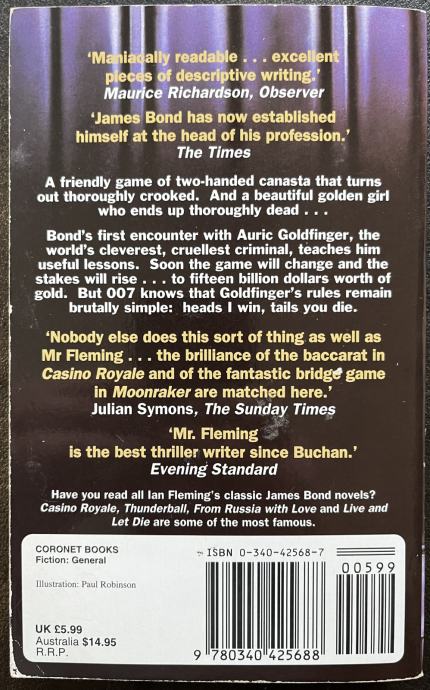 Prodajem roman Iana Fleminga: Goldfinger (James Bond 007) na engleskom jeziku, paperback, u mekom uvezu i u izvrsno očuvanom stanju.