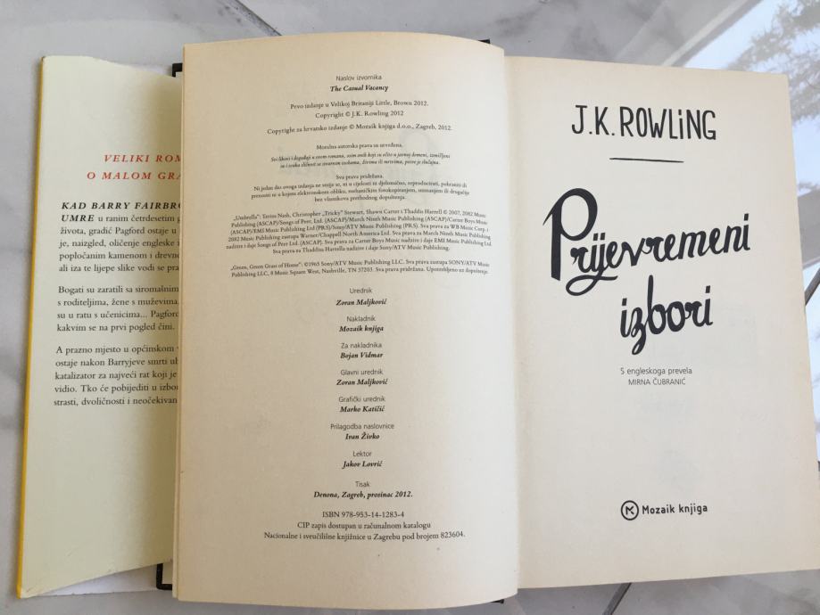 Roman o malom gradu, "Prijevremeni izbori", prvi je roman za odrasle spisateljice J. K. Rowling.