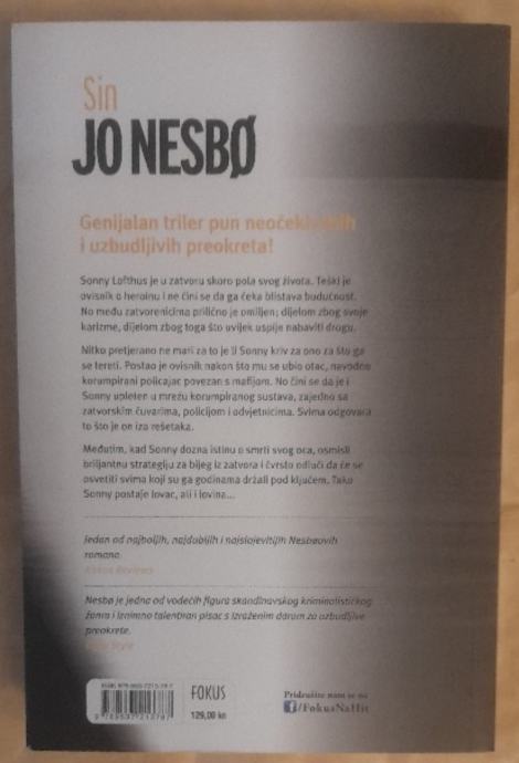 Prodajem roman Sin autora Jo Nesbøa, izdanje na hrvatskom jeziku u izdanju Fokusa Zagreb 2015.