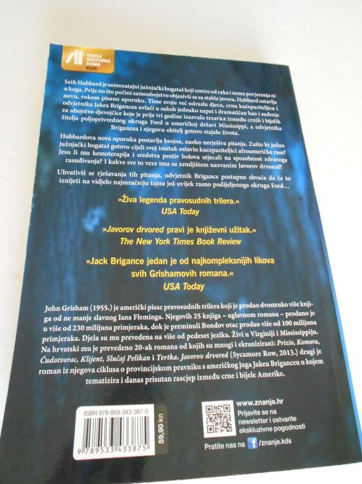 Prodajem knjigu Johna Grishama "Javorov drvored", izdavač "Znanje" 2016.. godine, meki uvez. Knjiga je nova.