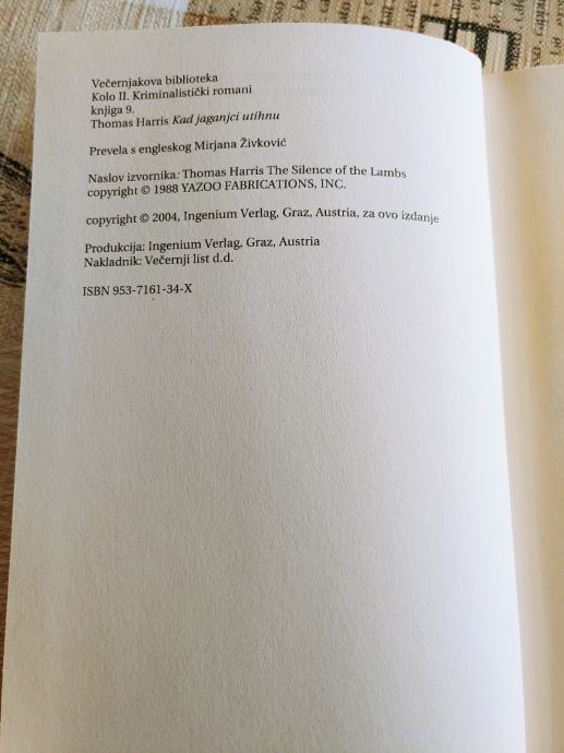 Prodajem rabljenu knjigu Kad jaganjci utihnu.