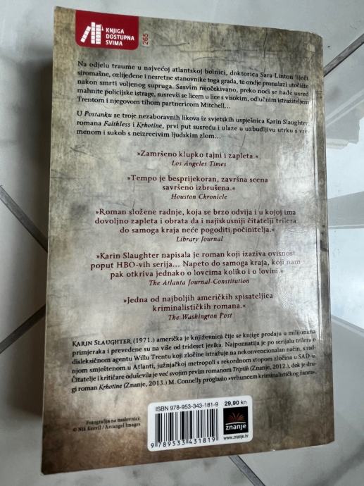 Na odjelu traume u najvećoj atlantskoj bolnici, doktorica Sara Linton liječi siromašne, ozlijeđene i nesretne stanovnike toga grada, te ondje pronalazi utjehu od smrti voljenog supruga koja joj je potresla život. A onda se u trenu zatekla usred mahnite policijske istrage, našavši se licem u lice s visokim, odlučnim istražiteljem Trentom i njegovom tihom partnericom Mitchell… U Postanku se troje nezaboravnih likova iz svjetskih uspješnica Karin Slaughter, romana Faithless i Krhotine, prvi put susreću i ulaze u uzbudljivu utrku s vremenom i sukob s neizrecivim ljudskim zlom.