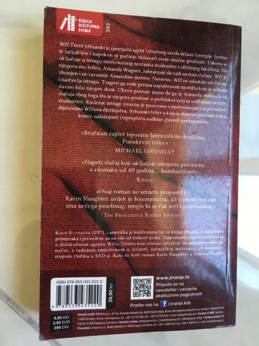 Karin Slaughter (1971.) jedna je od najpoznatijih američkih autorica trilera danas. Njezini romani prodani su u više od 35 milijuna primjeraka i prevedeni u 37 zemalja. Poznata je po svojim serijalima o agentu Willu Trentu i doktorici Sari Linton, a za njezine samostalne romane Grad murjaka, Dobra kći i Pieces of Her već su otkupljena prava za snimanje televizijskih serija i filmova.