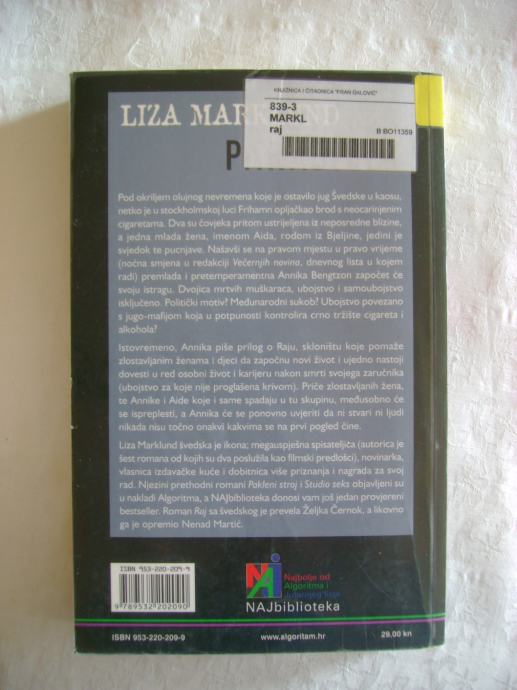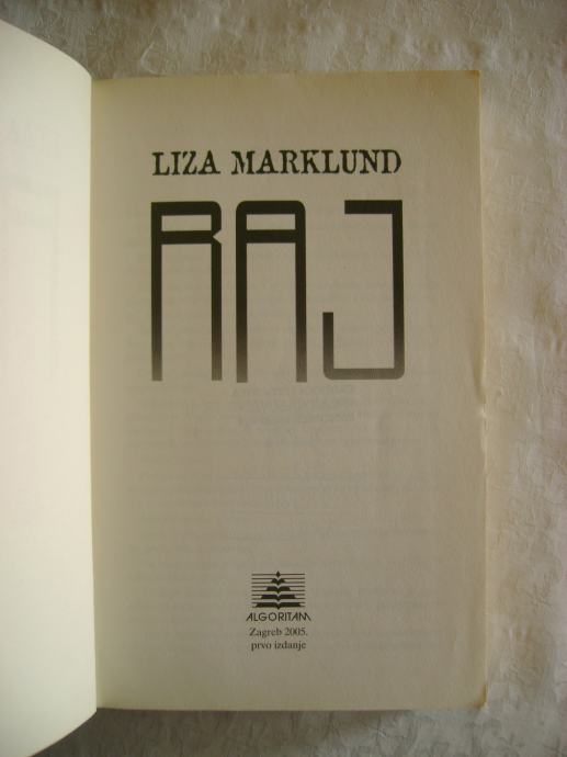 Liza Marklund - Raj - izdavač Algoritam, Zagreb 2005. godine, 15 x 23 cm, meki uvez, 330 stranica.