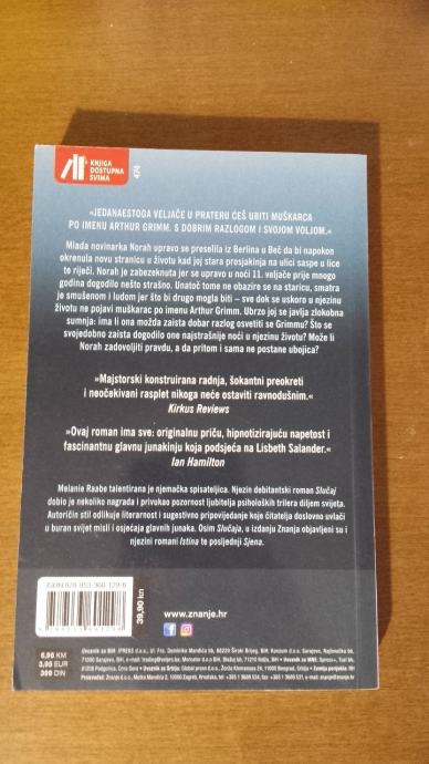 Melanie Raabe talentirana je njemačka spisateljica. Njezin debitantski roman Slučaj dobio je nekoliko nagrada i privukao pozornost ljubitelja psiholoških trilera diljem svijeta.