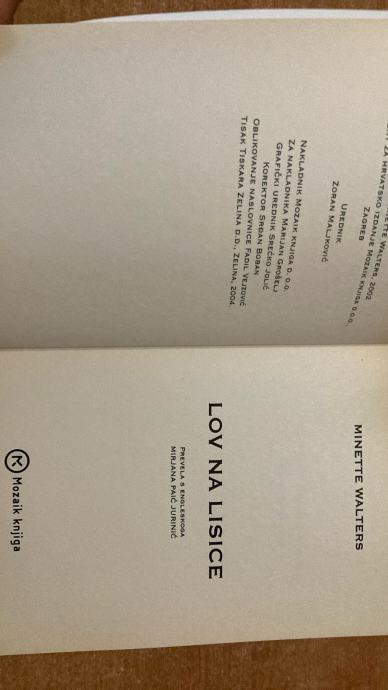 MINETTE WALTERS:LOV NA LISICE, kriminalistički roman