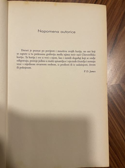 Iskusna novinarka Rhoda Gradwyn odlučila je nakon tridesetak godina ukloniti ožiljak na licu. Zbog diskrecije odabrala je privatnu kliniku smještenu na imanju Cheverell Manor u Dorsetu. Iako su neki članovi osoblja uznemireni Rhodinim dolaskom, ništa ne ukazuje na tragične događaje koji će uslijediti. Kad Rhodu pronađu ubijenu slučaj preuzimaju Scotland Yard i inspektor Dalgliesh. Da bi otkrio ubojicu Dalgliesh će morati upoznati živote osumnjičenih i proniknuti u njihove odnose i motive.(iz tiska)