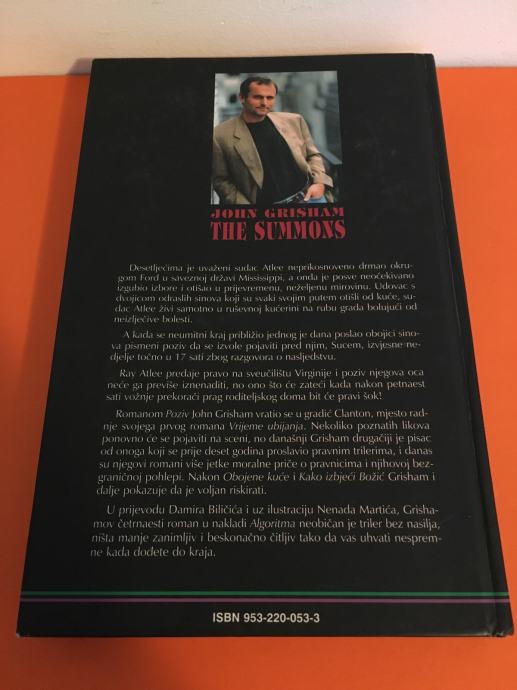 Poziv, John Grisham, Izdavač:Algoritam, prvo izdanje, 2002g., 287 stranica, tvrdi uvez.
