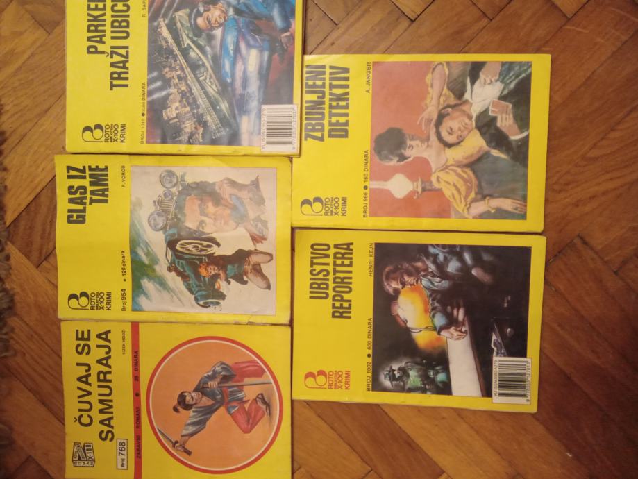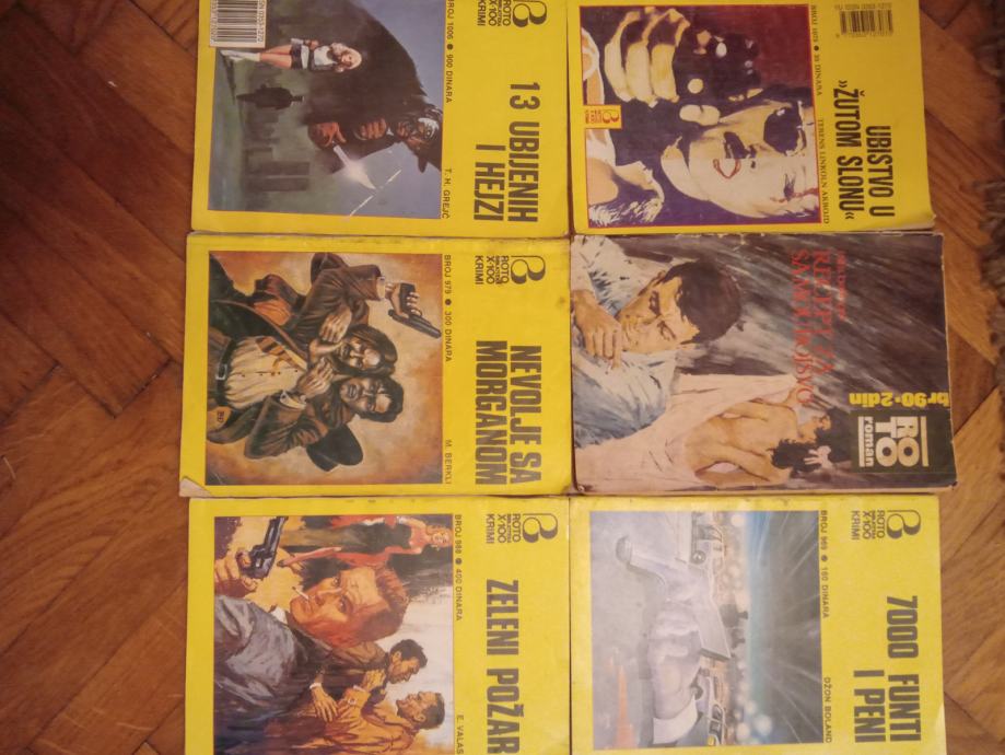 11 većinom krimića, ima od (4) ocijena do glancera, pa je i cijena od 1 - 2 €/kom. ovisi o očuvanosti, svih 11 = 10 €