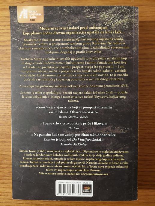 Sanctus je triler o apokalipsi i teoriji zavjere kakav još niste čitali – podiže letvicu uzbuđenja i intrige i razotkriva svu raskoš Toyneova književnog talenta. Sjajna priča koja će pumpati adrenalin vašim žilama.
