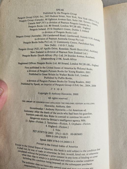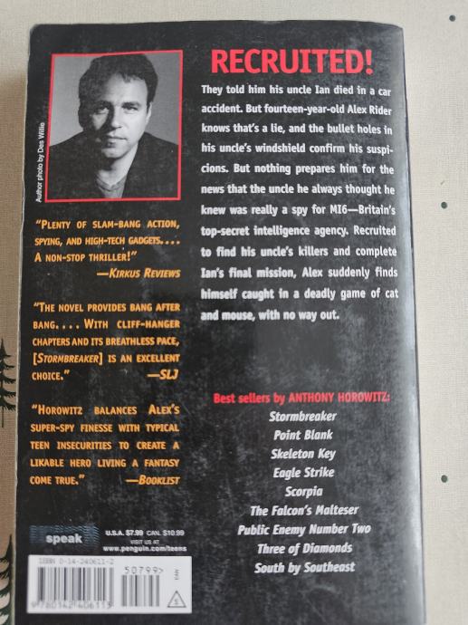 They told him his uncle died in an accident. He wasn't wearing his seatbelt, they said. But when fourteen-year-old Alex finds his uncle's windshield riddled with bullet holes, he knows it was no accident. What he doesn't know yet is that his uncle was killed while on a top-secret mission. But he is about to, and once he does, there is no turning back. Finding himself in the middle of terrorists, Alex must outsmart the people who want him dead. The government has given him the technology, but only he can provide the courage. Should he fail, every child in England will be murdered in cold blood.