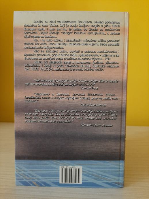 Mračni su dani za Matthewa Scuddera, bivšeg policijskog detektiva iz New Yorka, koji je svoju karijeru utopio u piću. Sada Scudder ispija i ono što mu je ostalo od života po mračnim barovima, koji se otvaraju rano i zatvaraju kasno. Usput obavlja ‘usluge’ lokalnom sumnjivcima, s kojima dijeli mjesto za šankom. No, i na tako tužnim i usamljenim mjestima prilika ponekad zakuca na vrata – u slučaju vlasnika bara kojemu treba povratiti protuzakonito knjigovodstvo. Kad se slučajevi počnu odvijati u potpuno neočekivanim i opasnim pravcima – poput noćne more u pijančevu snu – vrijeme je za Scuddera da procijeni svoje prioritete: da ostane trijezan…i živ.