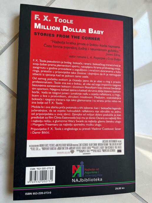 F.X. Toole o boksu zna sve. Sredinom i krajem četrdesetih počeo se baviti boksom, namjerno i nenamjerno. Privijao se s ocem uz radioaparat i željno slušao neumorne glasove izvjestitelja iz ringa. Ostao je poklonik boksa tijekom godina jer su ga znanost i umijeće borbe fascinirali koliko i ljudi koji su se usuđivali staviti svaki gram tijela i duše u nju. Gubitnici u boksu dojmili su ga se kao i prvaci, jer su se izložili potpunom riziku u posve jednakoj mjeri. Jer, čarolija ringa različita je od čarolije teatra, a zastor nikada ne padne – krv u ringu je prava krv, slomljeni nosevi i slomljena srca su pravi, a ponekad se slome zauvijek. Boks je čarolija muškaraca u bici, čarolija volje, vještine i boli, te stavljanje svega na kocku ne bi li čovjek mogao poštovati samoga sebe do kraja života.