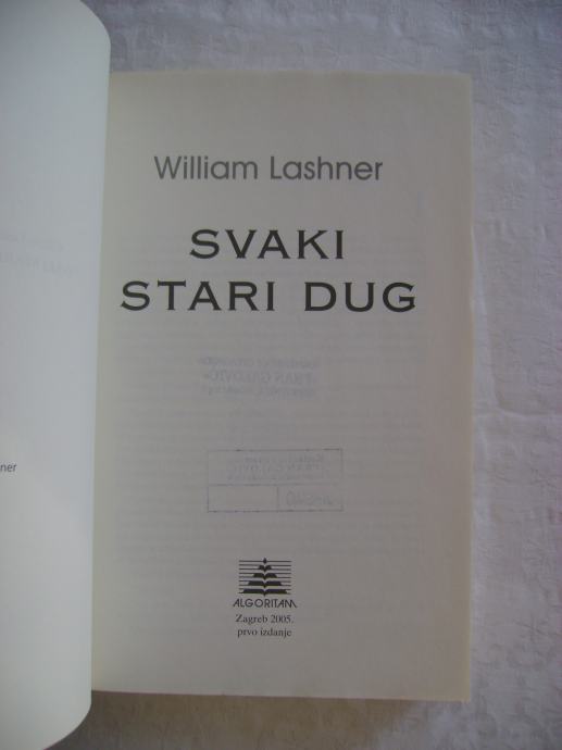 William Lashner - Svaki stari dug - prvo izdanje, izdavač Algoritam, Zagreb 2005. godine, 15 x 24 cm, meki uvez, 399 stranica.