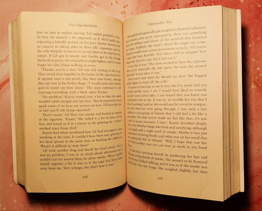 Knjiga I Remember You (islandski: Ég man þig) Yrse Sigurðardóttir je jeziv islandski triler/priča o duhovima koja prati dvije odvojene priče: tri prijatelja koji renoviraju udaljenu kuću u Westfjordsu i liječnika koji istražuje samoubojstvo.