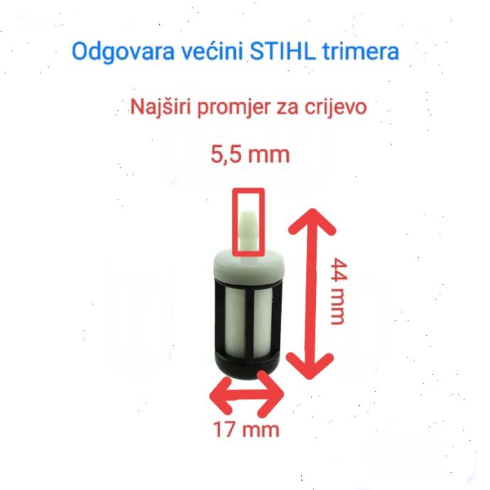 Filter goriva za flaksericu, trimere, motornu pilu i druge strojeve.