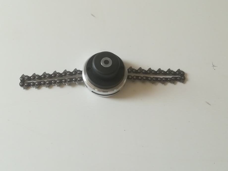 Prodam glavu sa lancom za trimer sa 10/Lijevim navojem. lanac se ne da mijenjati.Glava je lagana, To je za primjenu za grmlje. Dugo traje,a upotreba u sikarama, makiji, trnju ili zapustenim vocnjacima.Isto tako mnogi sa njom kose i travu, pa netreba žinja. Vrijednost 49 £. Prodam za 45 e..