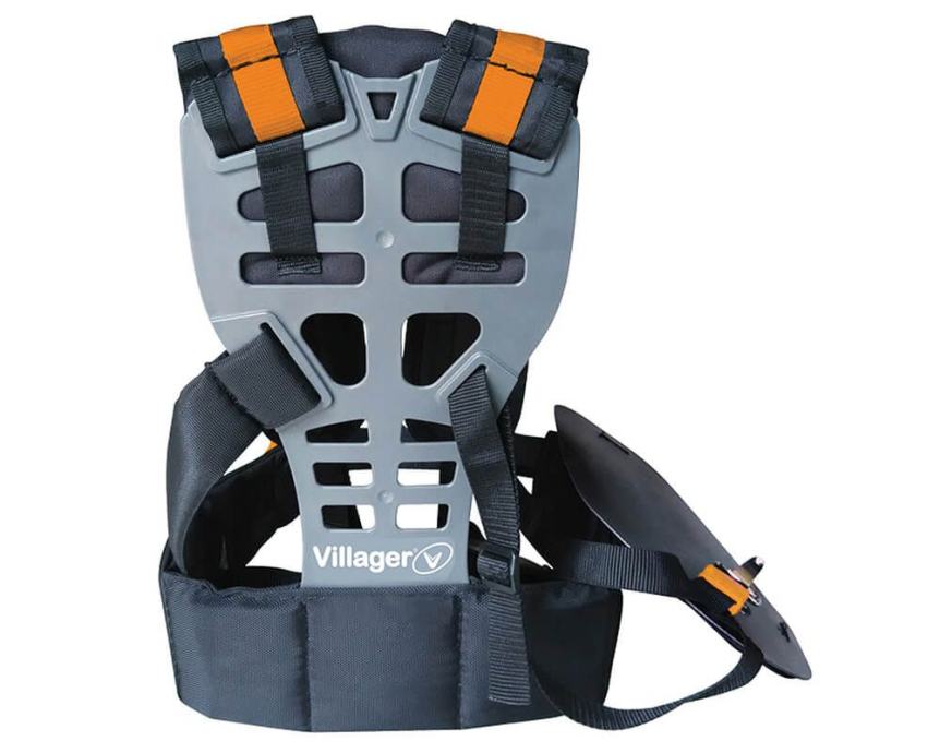 Profesionalni remen za motorne trimere s narančastim detaljima.