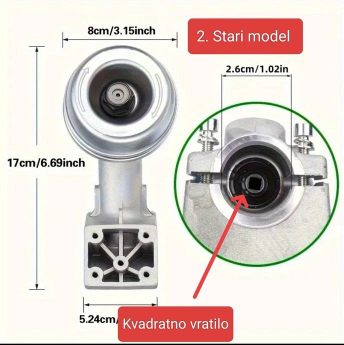 Postoje 2 vrste novih modela pa usporedite svoj sa slikama jer neki modeli nemaju kvadratni dio za učvršćivanje štitnika (deflektora).