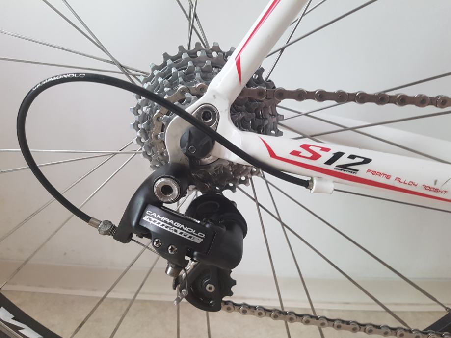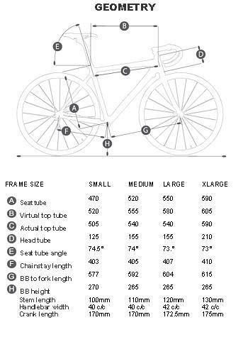 Veličina je M, odnosno za visinu vozača cca 170-178 cm. Slika s geometrijom je u prilogu. Bicikla je vožena rekreativno nekih 7000 km, stavljen je novi lanaci i sajle. Bicikla se prodaje bez pedala, ali mogu staviti obične pedale za probnu vožnju.