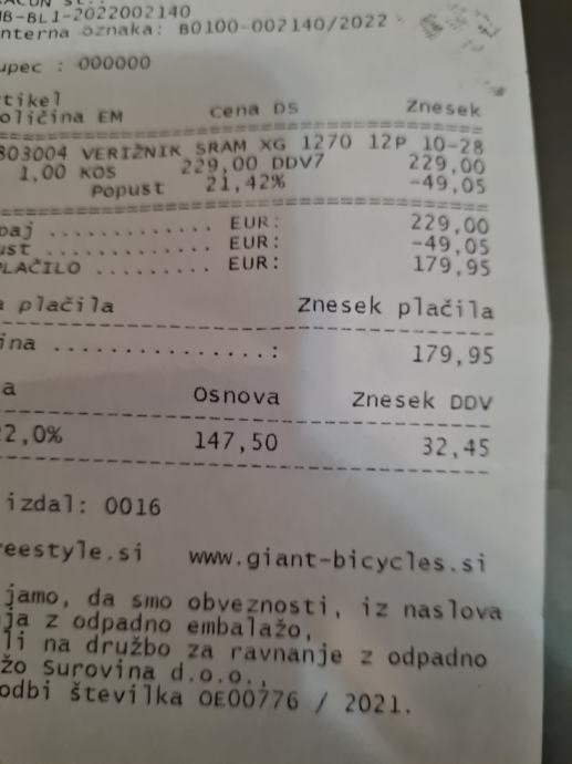 ---PRODAJEM NOVU KAZETU SRAM FORCE --XDR--12---BRZINA---10---28---SAMO PROBANU--NOVO SA RAČUNOM
