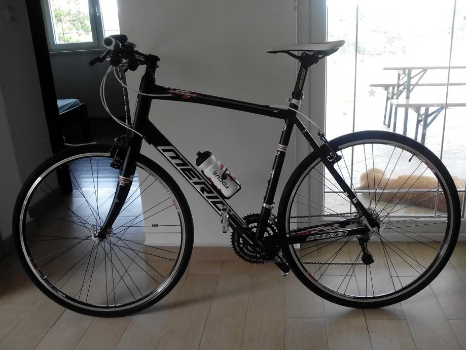 Prodajem izuzetno dobro opremljen fitnes bicikl Merida Speeder T3 kupljen 23.5.2014. Bicikl posjeduje svu moguću opremu, tiagra nabe,sora šifteri,shimano 105 mjenjac,prednja i stražnja lampa,ciklo kompjutor"Sigma",nogica,nosac bidona,nosac bisaga,te bisage cca 150L kapaciteta,torbicu ispod sjedala,pumpu. Veličina rame 56. Cijena se odnosi na bicikl bez opreme. Moguca zamjena za specijalku