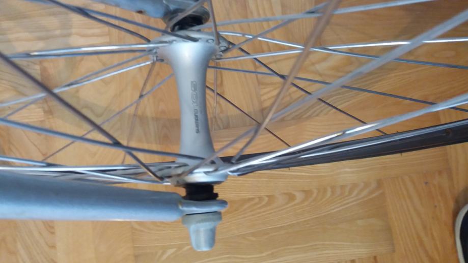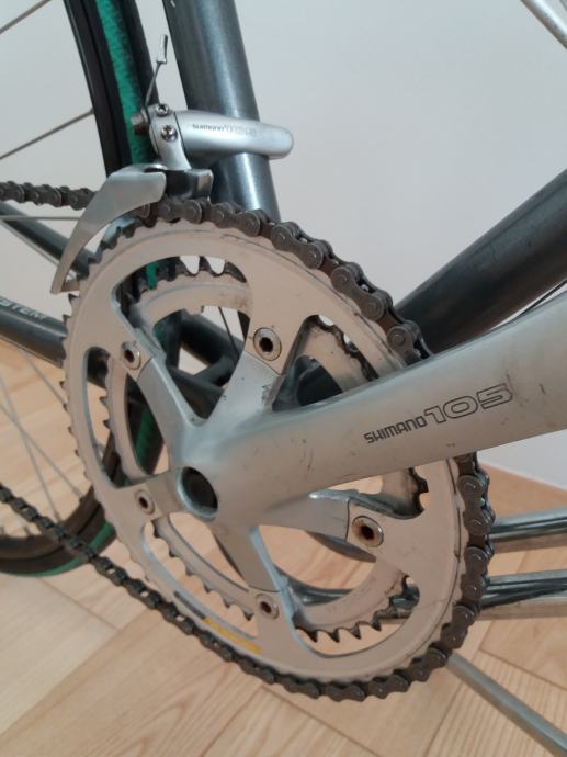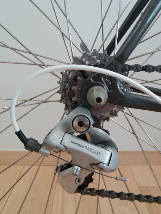 Kompletna oprema SHIMANO 105: (prednji, zadnji), pogon, kočnice, ručice kočnica, nabe.