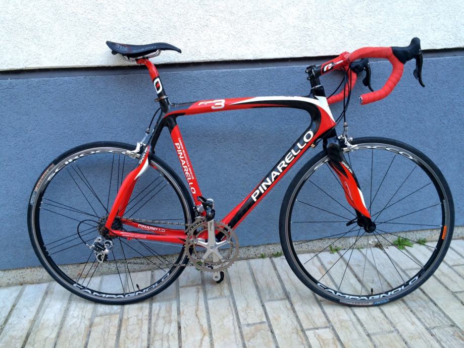 Pinarello FP3, karbonski okvir, veličina 57. Oprema Campagnolo Chorus 10 brzina, osim pogon Campagnolo Record. Karbonski volan i lulica MOST, karbonska šipka sjedala MOST, kotači Campagnolo Scirocco, sic Selle SMP Evolution, gume Ritchey Race Slick PRO. Bicikl je u odličnom stanju.