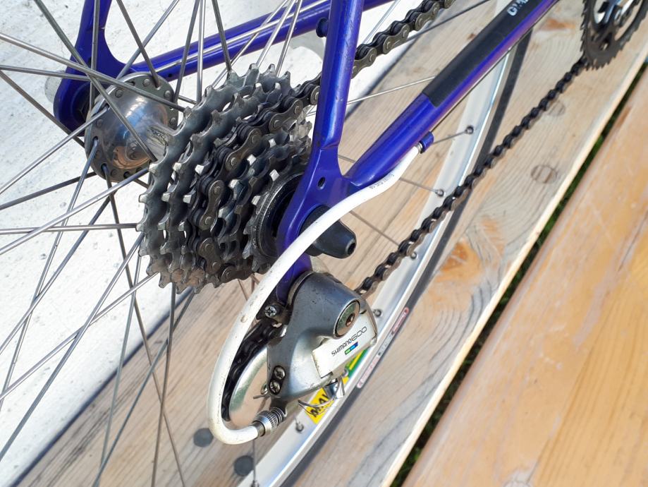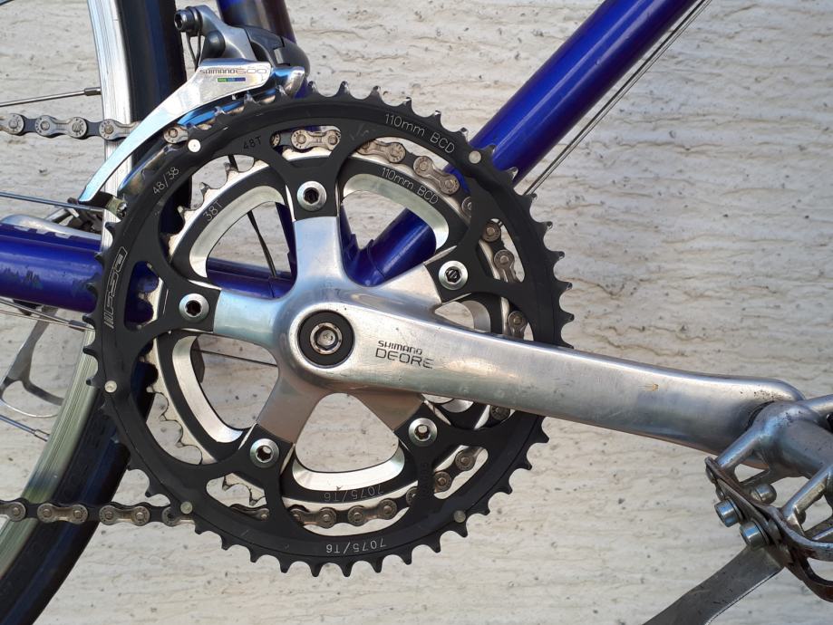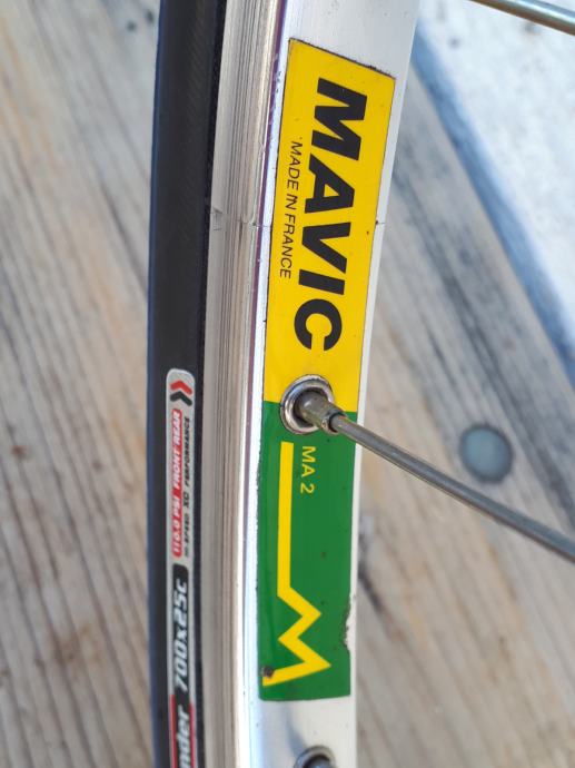 Vintage Frame race - steel/čelični ram - luged/gemuft - GIANT cromoly triple buted, vilica buted - Lula sedla 27mm ofset 30mm Ležaj vila 105 Shimano. Grupa dijelova mix, Shimano 600 /6400 klješta kočnica, aero brake leversi EXAGE 500. Crankset Shimano DEORE BCD 110 -170mm pogon šajbe FSA CNC 38/48. Mjenjači Shimano 6400 tricolor 2 X 7 index SIS 12-28-casssetta. Klinčer kotači - rims/felgen duble alu MAVIC MA 2 - Hub/Nabe Shimano RX 100 36 hi - Gume 28" 622 -700 c , 25-622 Author CST Thunder nove - Za visinu vozača 170 - 180 cm podesiv - Miro - mob.- 098 529 693 - velogrga.1949@gmail.com - ili kontakt preko njuškala
